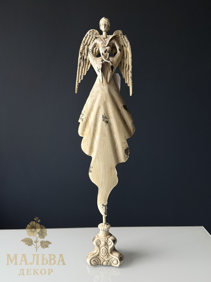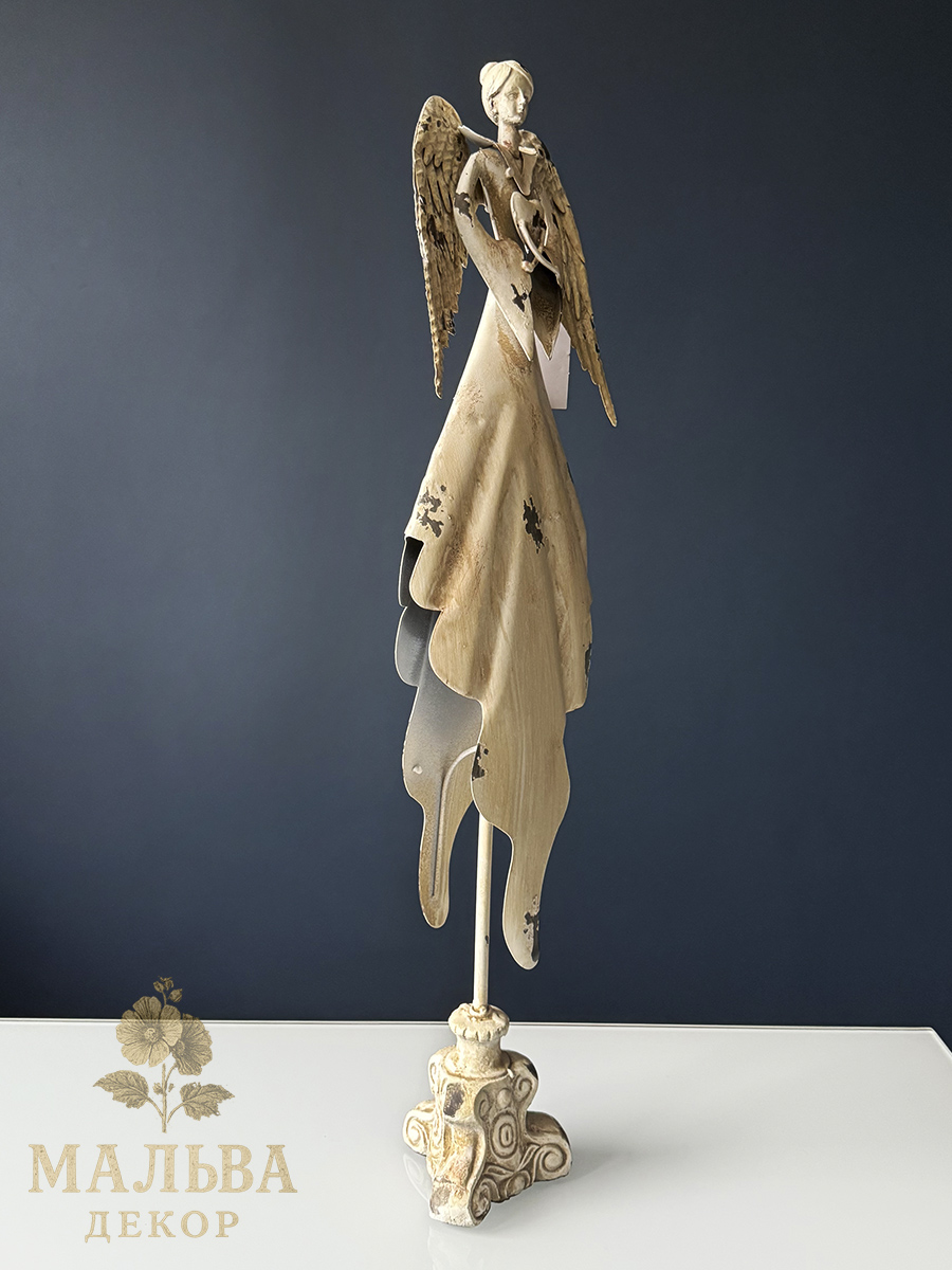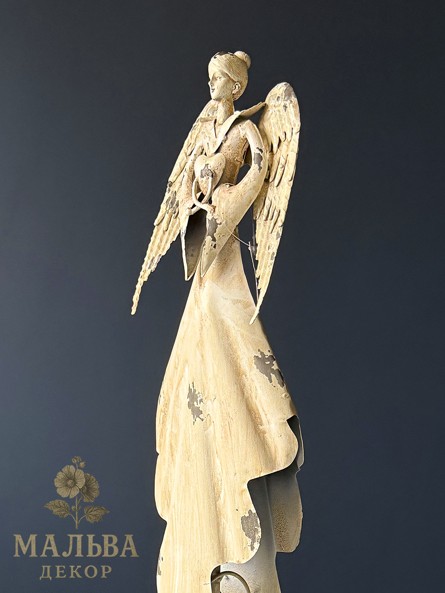 Декор металлический в виде ангела, который в руках держит сердце.