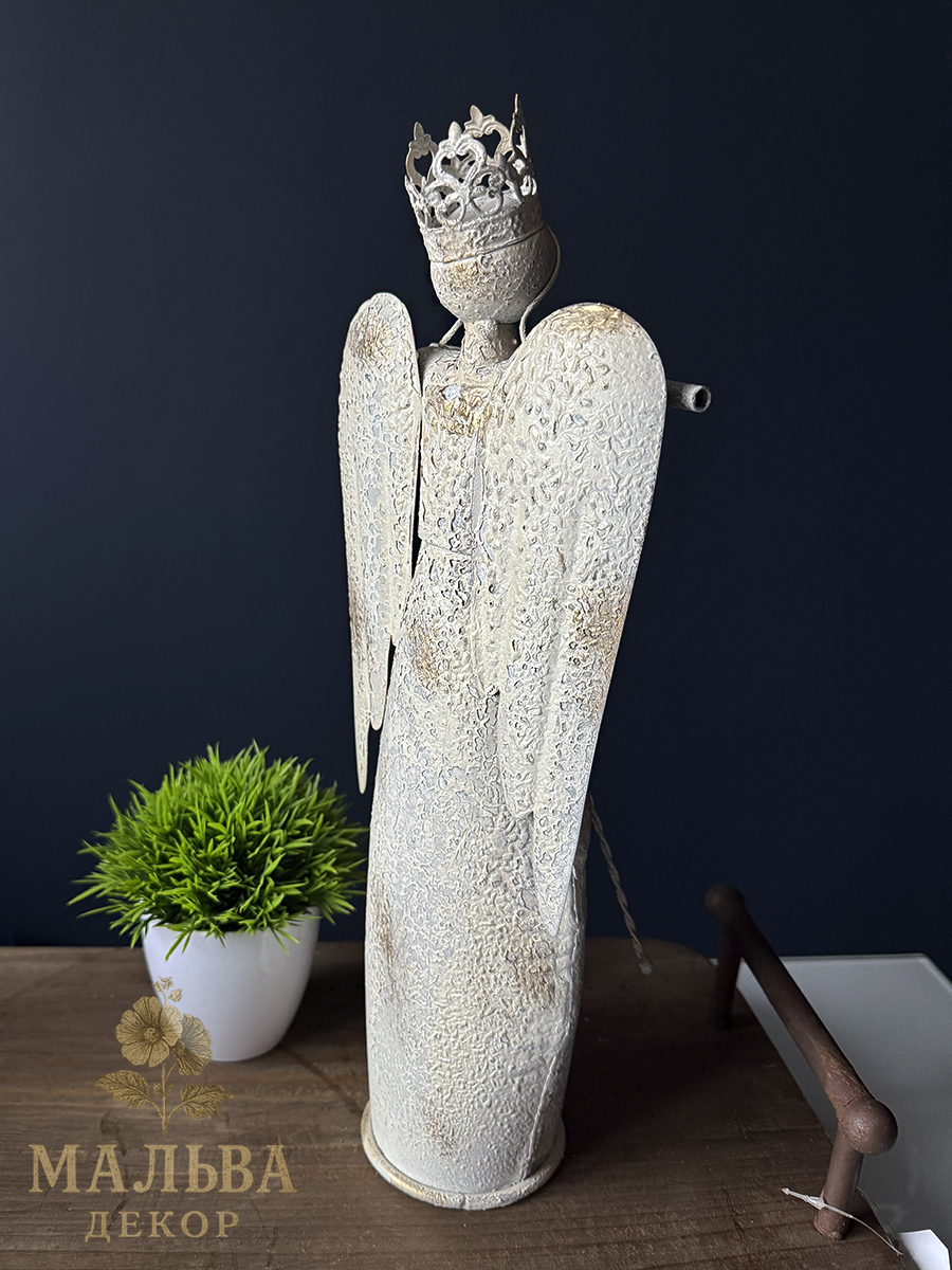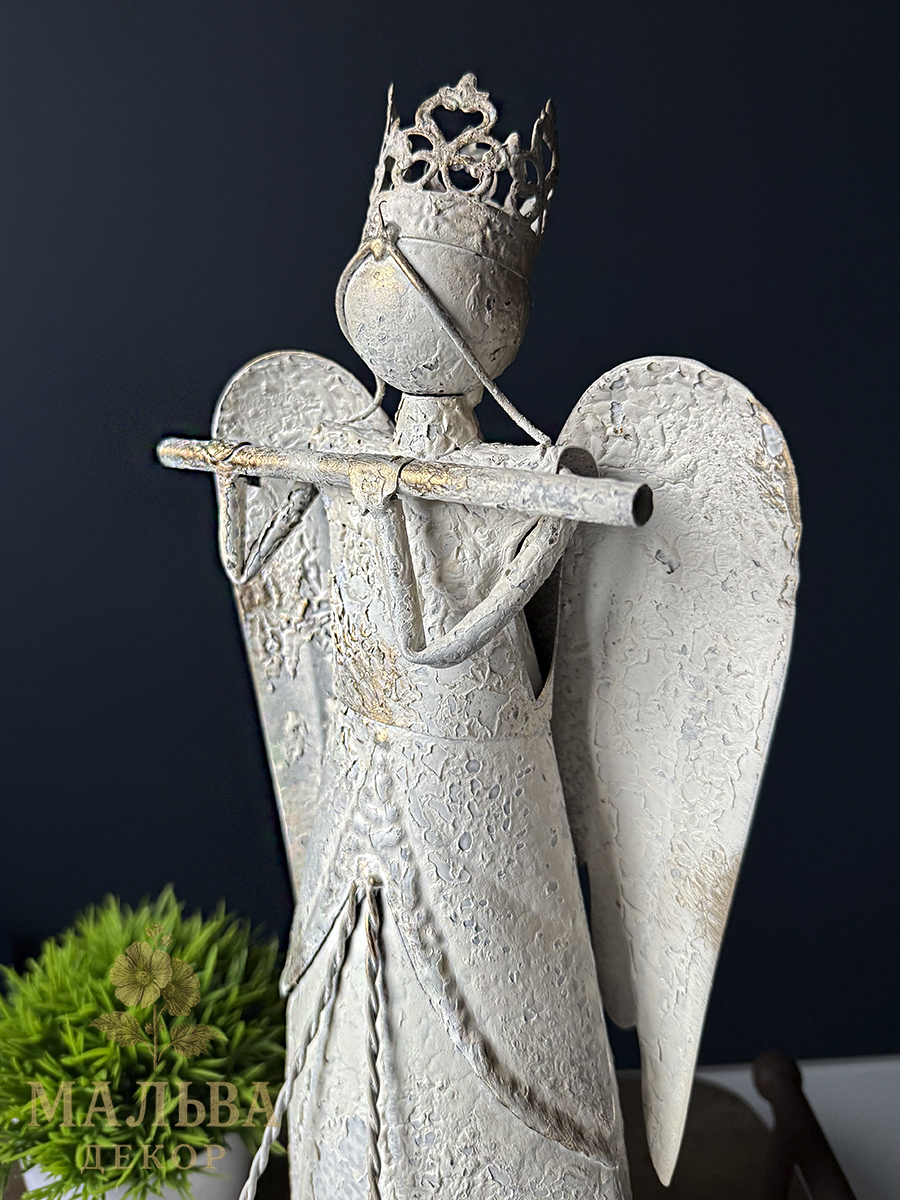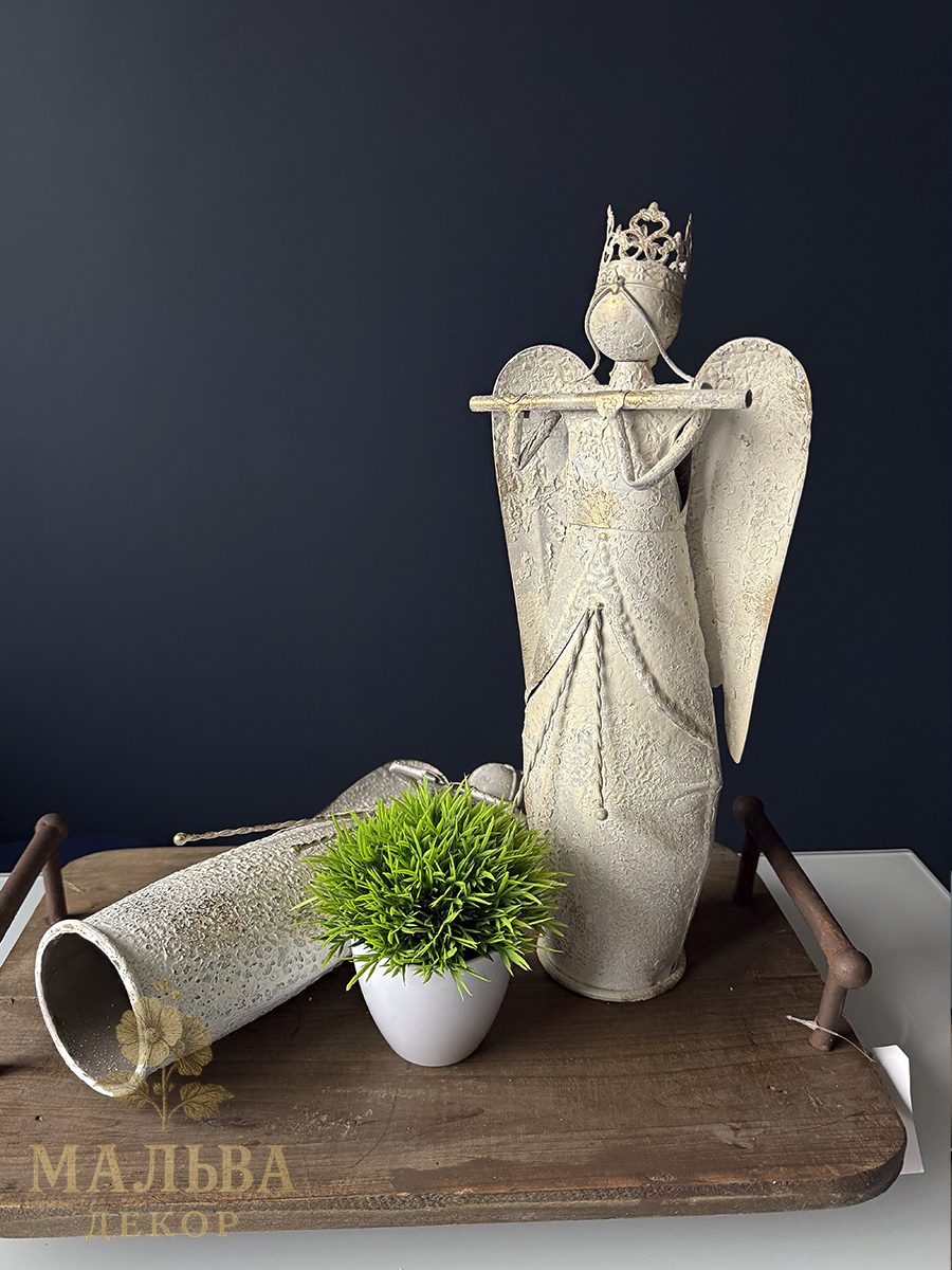 Металлический декор в сиде ангелов станет украшением при создании сезонных композиций, например новогодних.