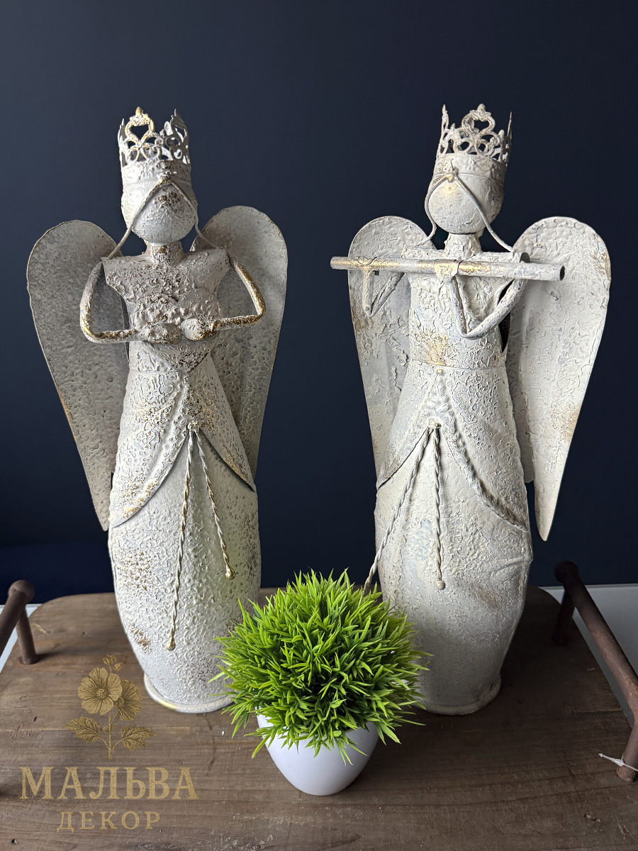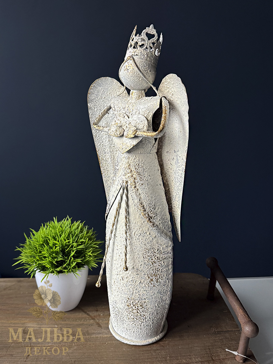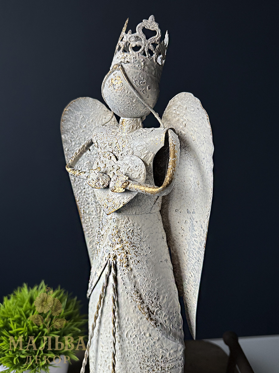 Металлический декор в сиде ангелов станет украшением при создании сезонных композиций, например новогодних.