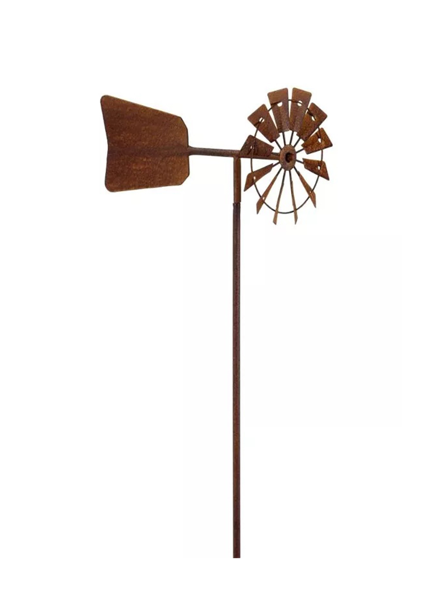 Металлический коричневый декор для сада в виде флюгера, который от верта приходит в движение.