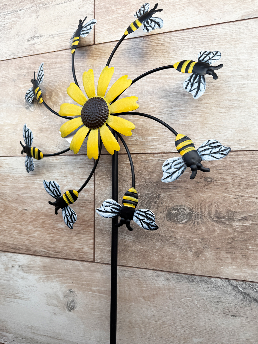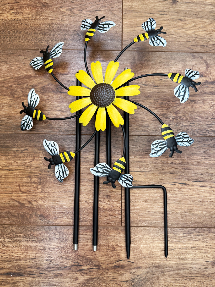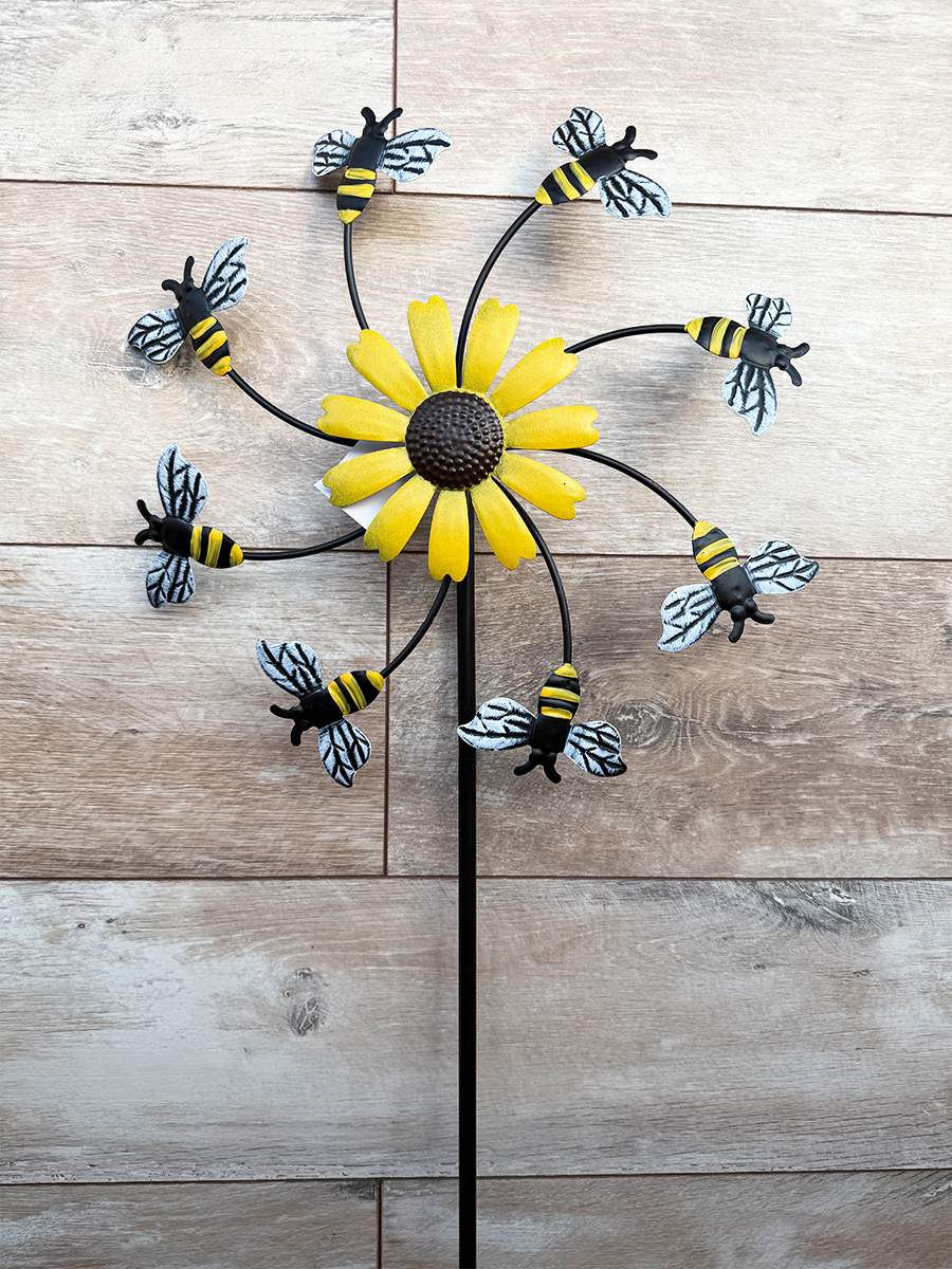Пчелиный рой может быть не страшным. Вертушка с пчелками крутиться от ветра. Станет ярким акцентом в вашем саду. Изделие металлическое, высотой 150 см. Размер: 37x6x150 см.