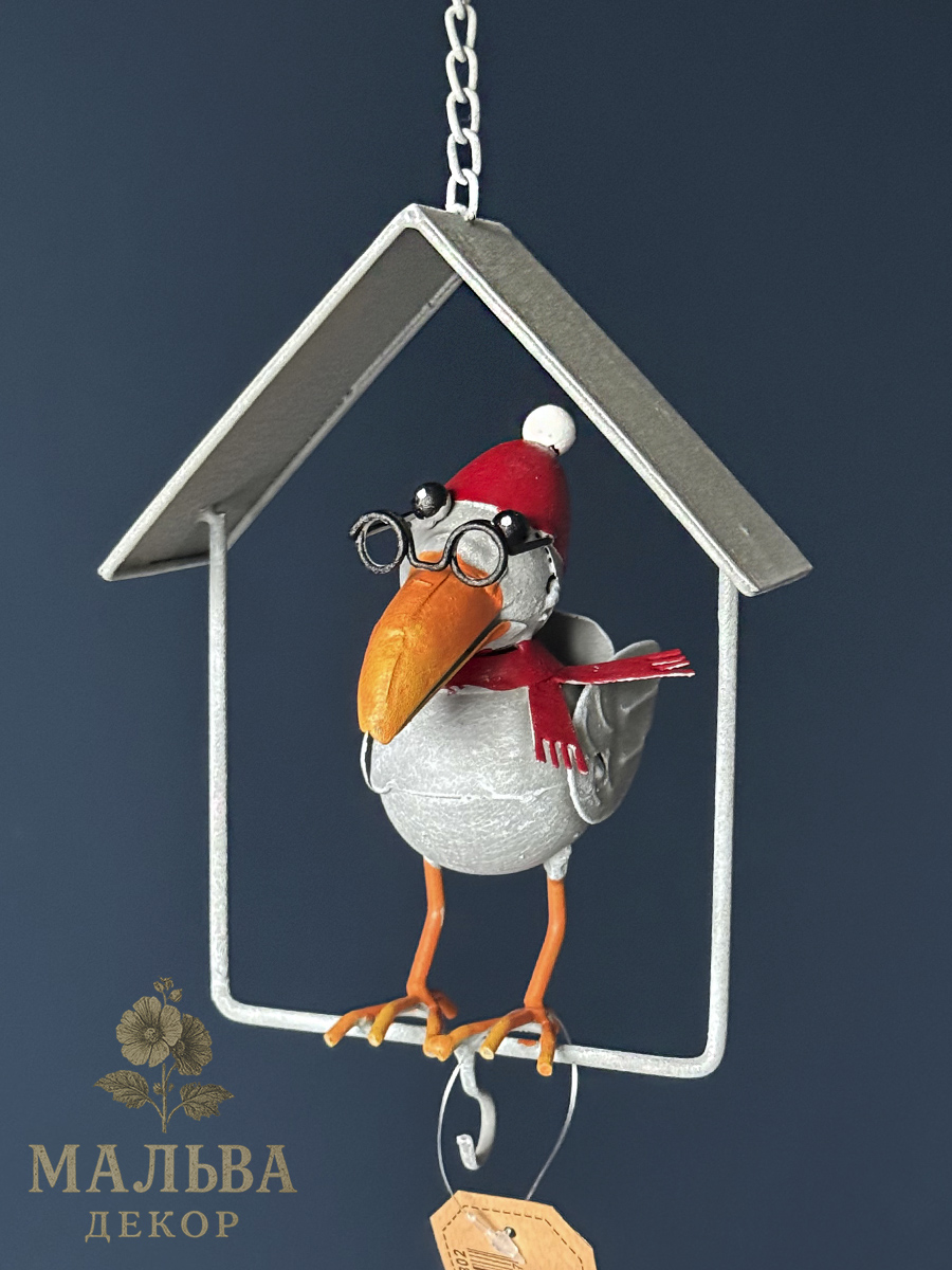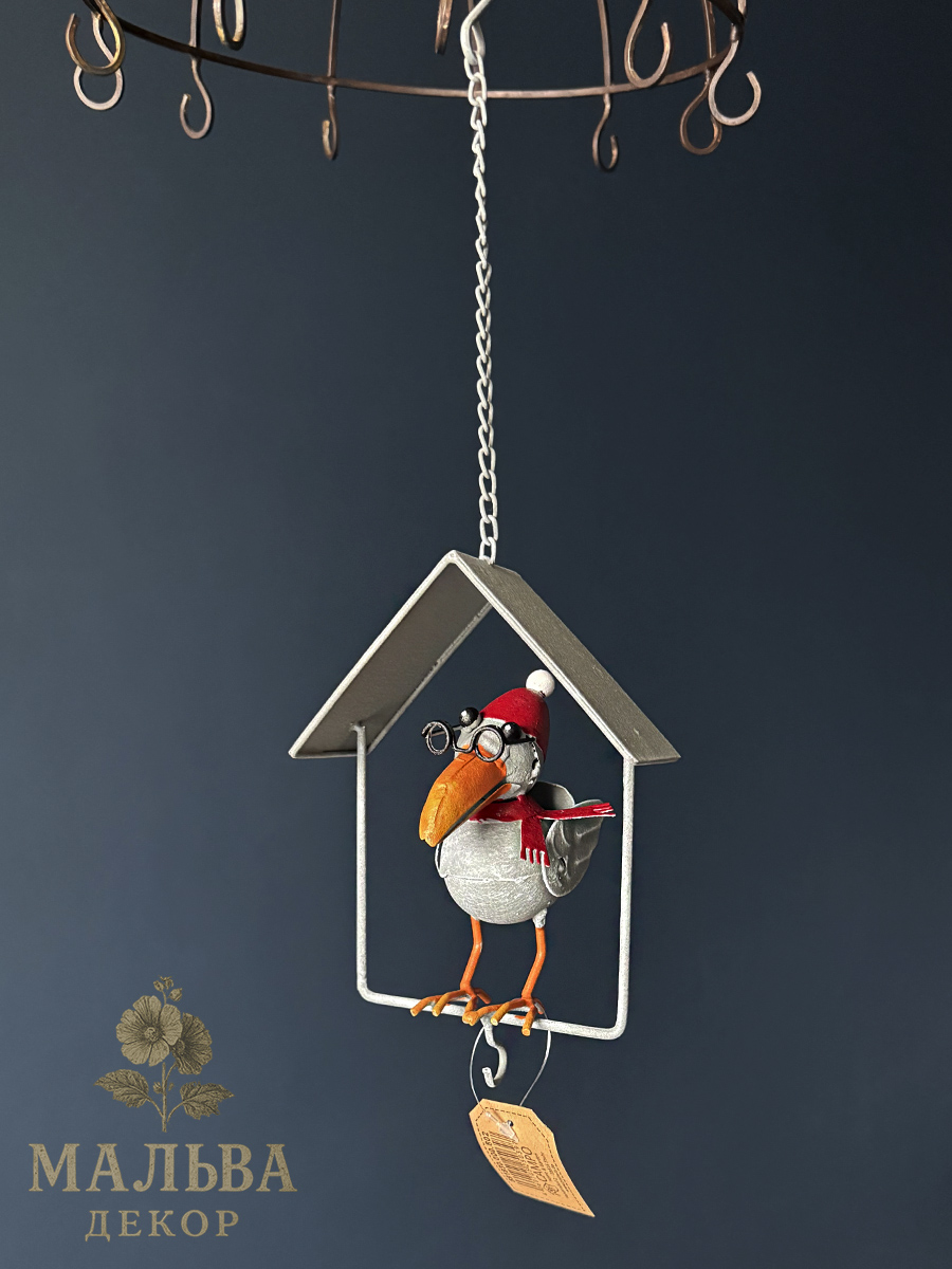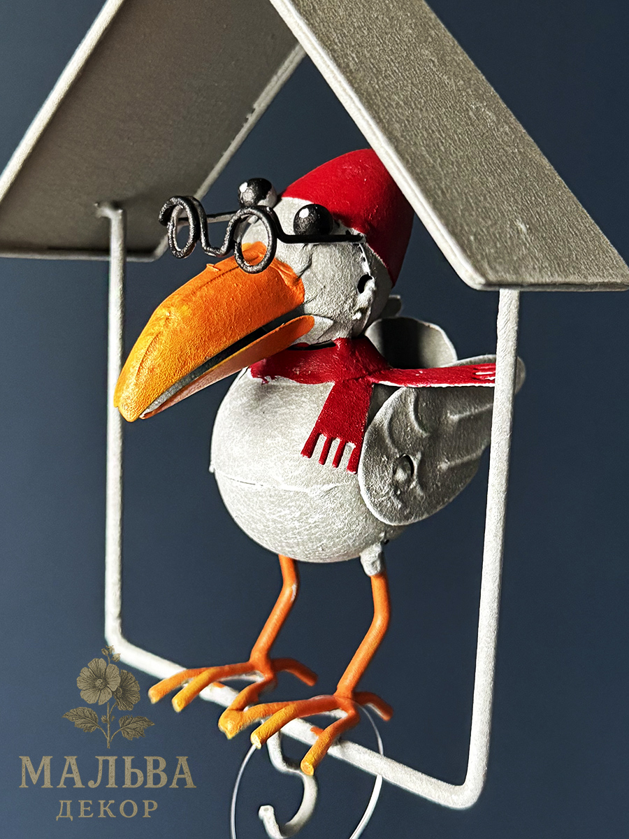 Стильная металлическая кормушка «Ворон в домике».