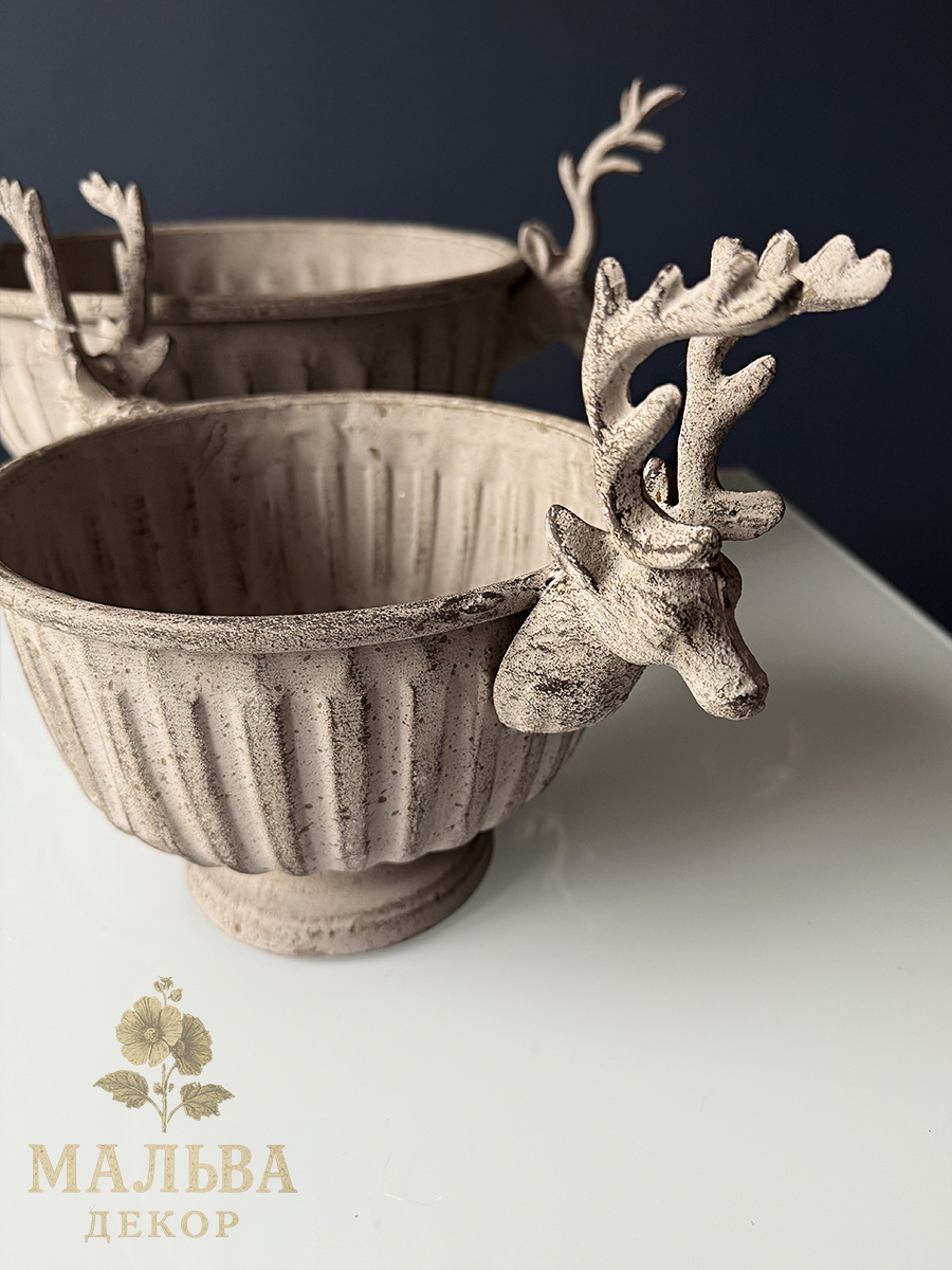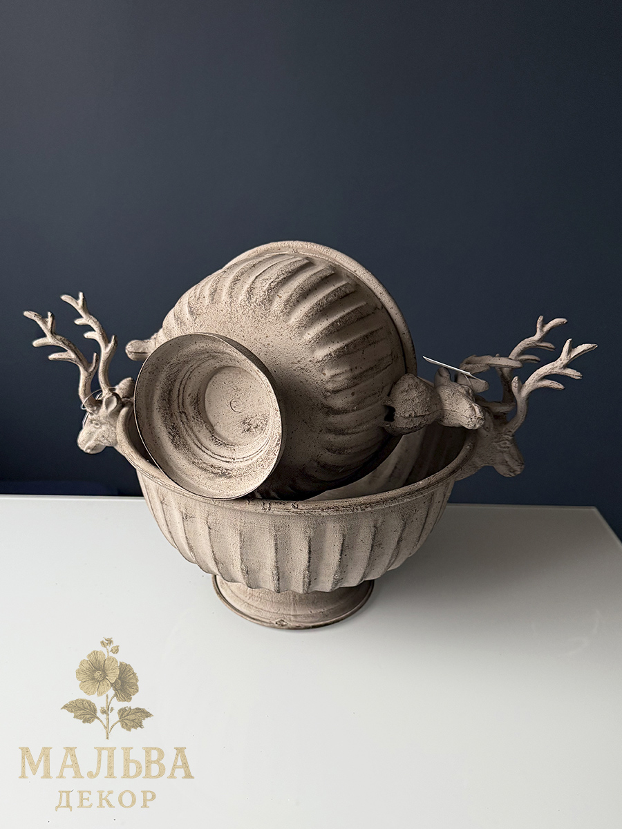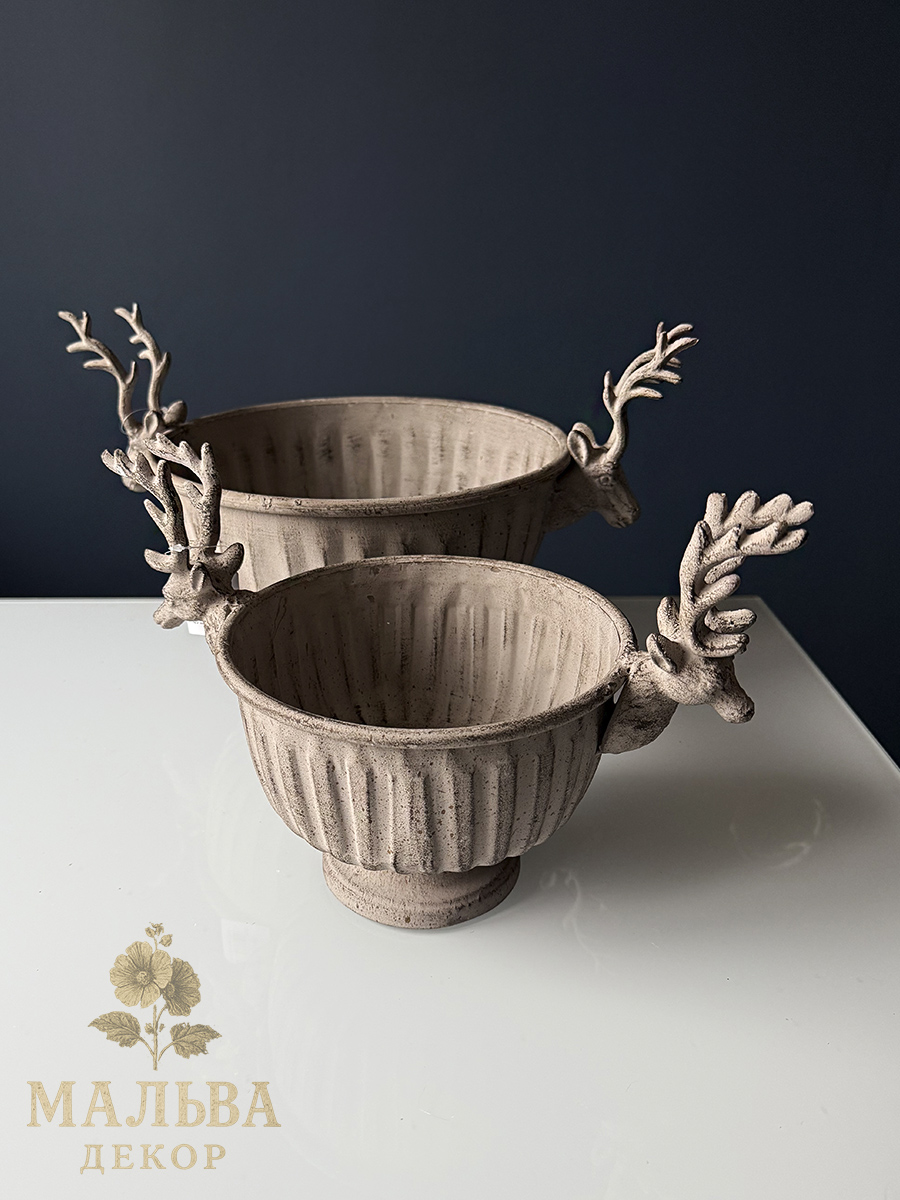Набор из двух металлических кашпо для декора или создания сезонных композиций.