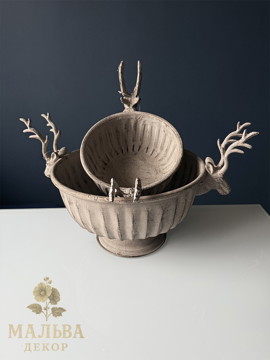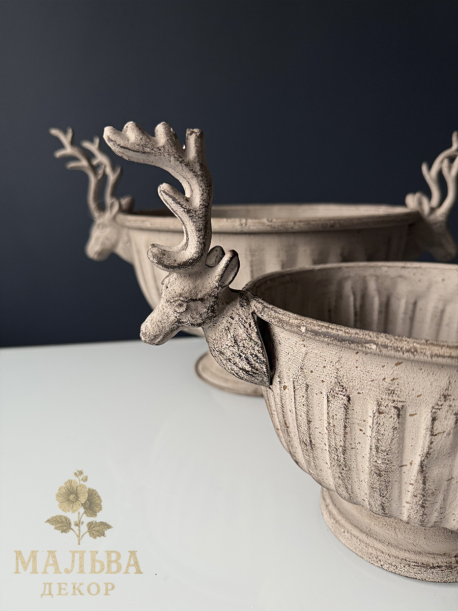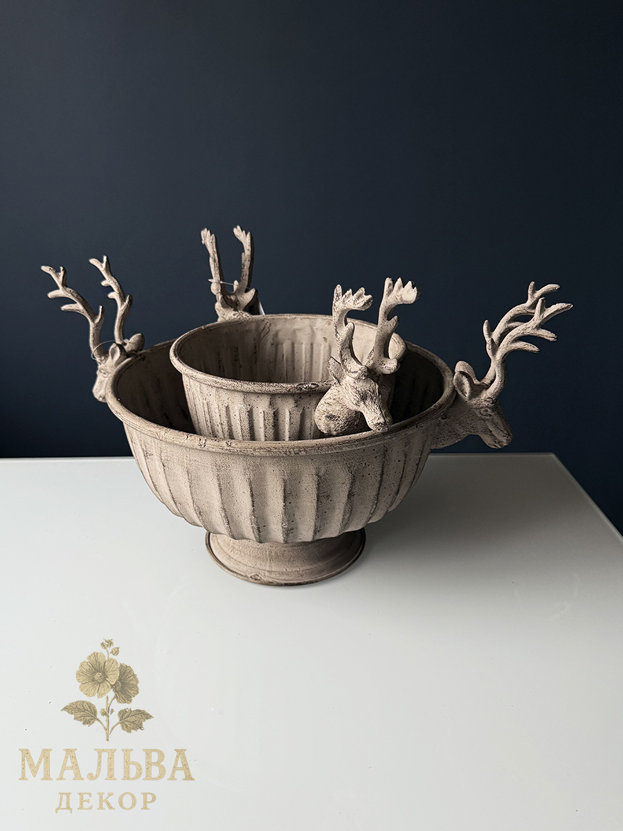 Набор из двух металлических кашпо для декора или создания сезонных композиций.