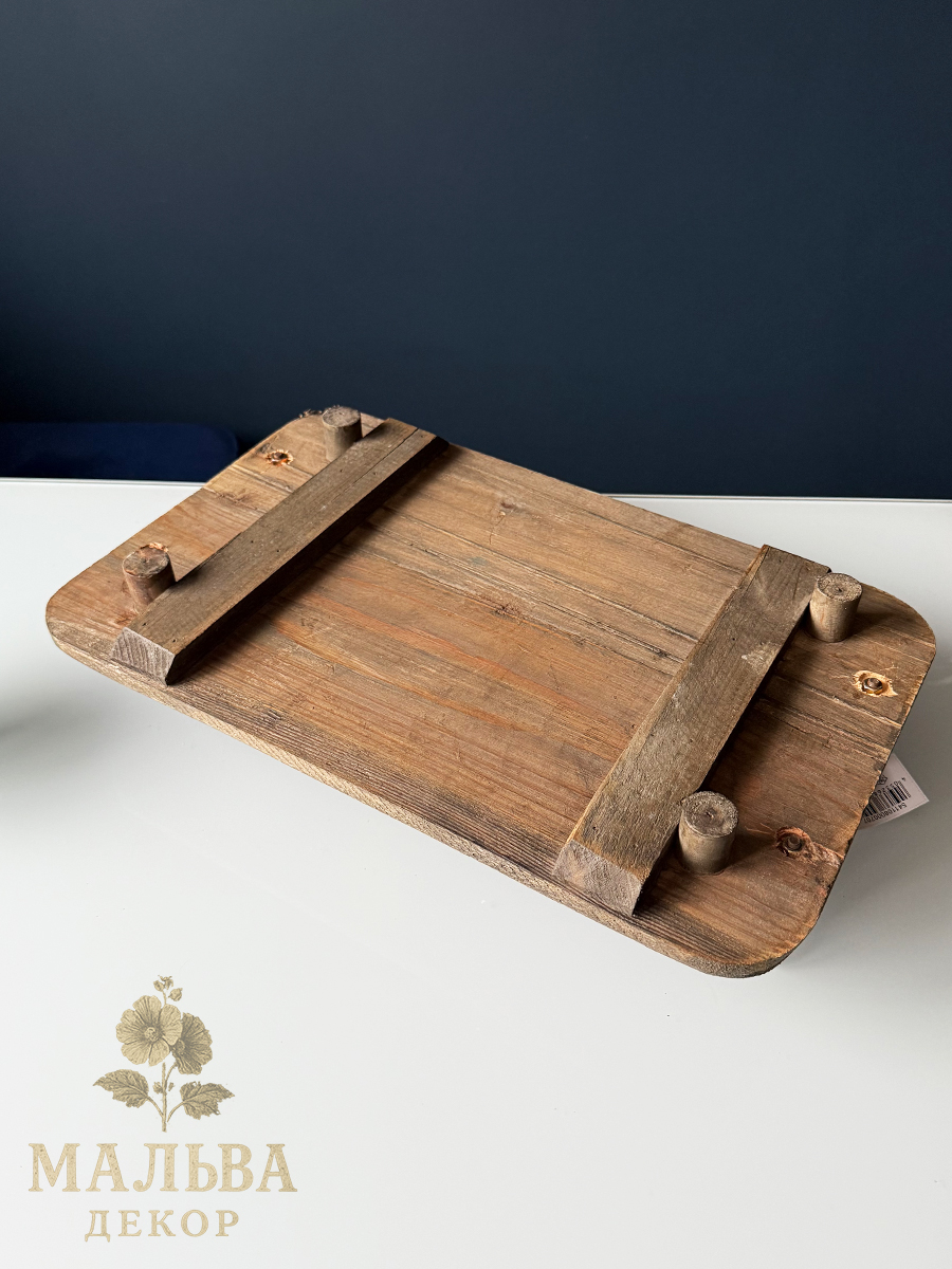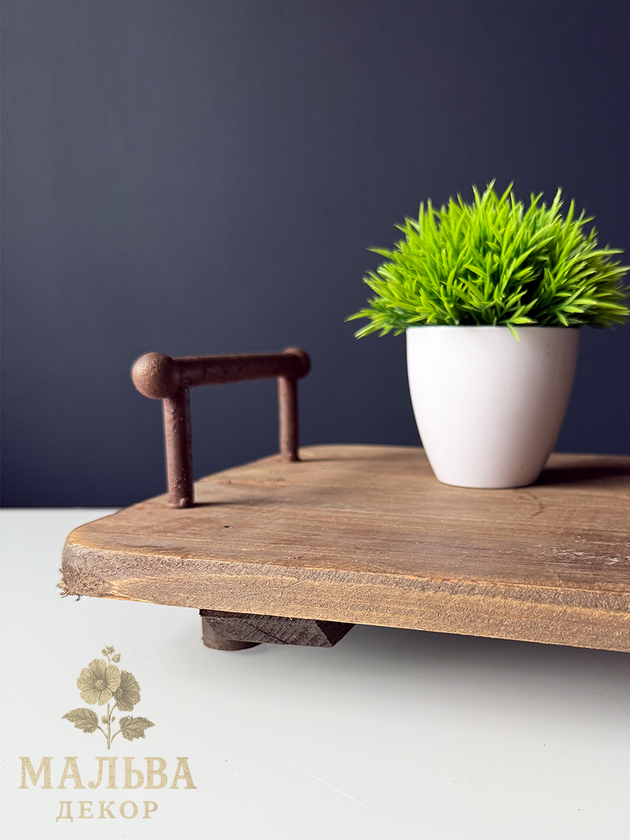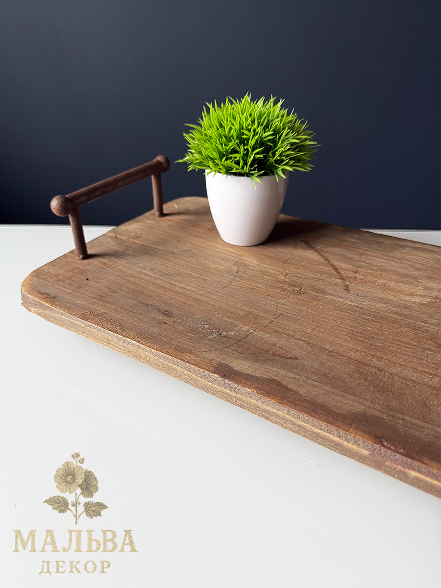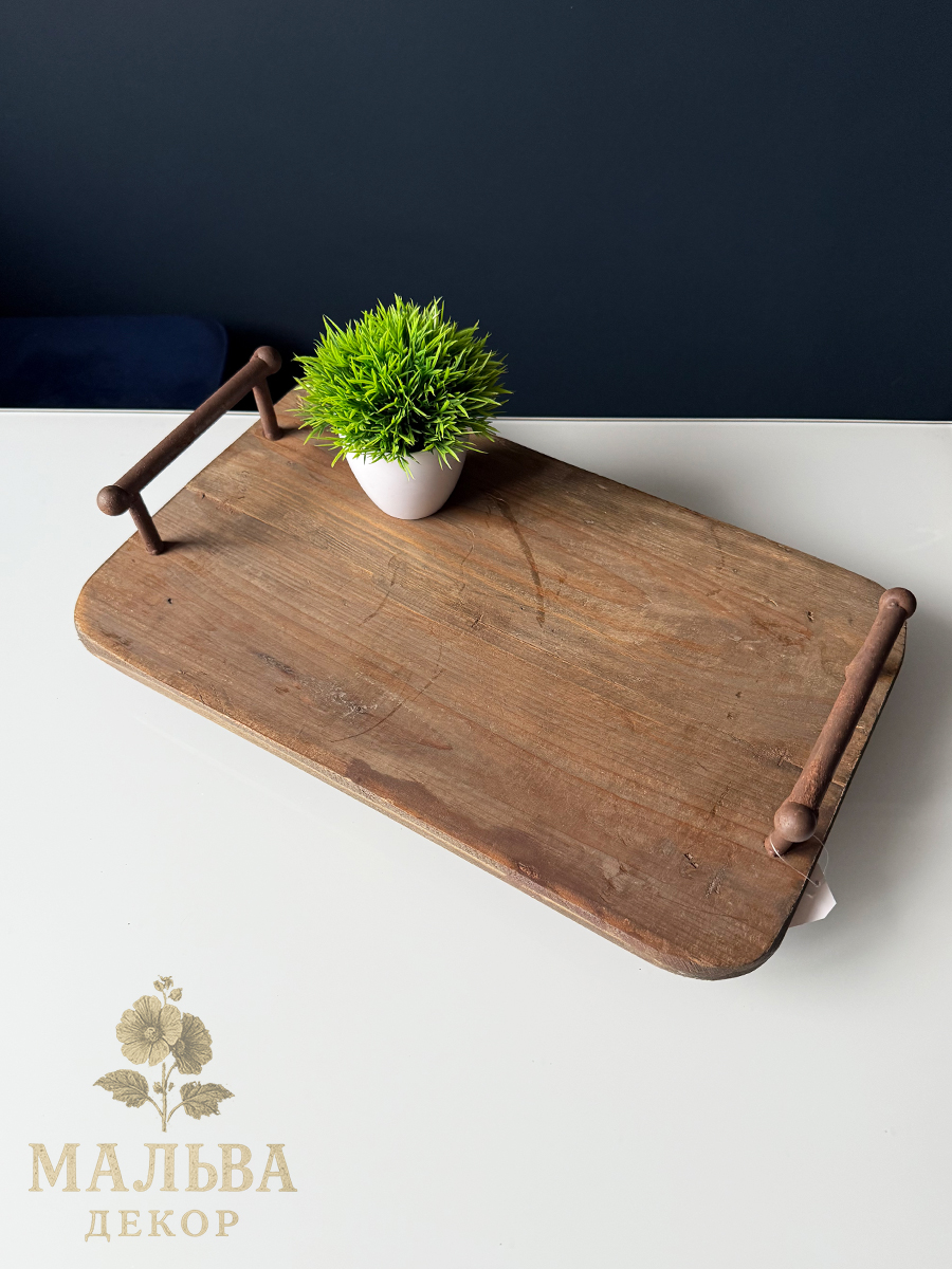 Интерьерный декоративный поднос, сделанный из переработанного дерева с элементами металла. состаренный внешний вид.