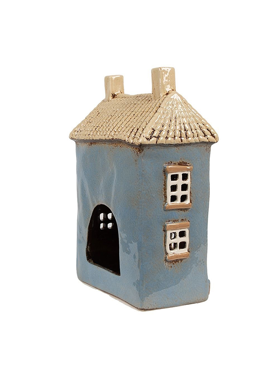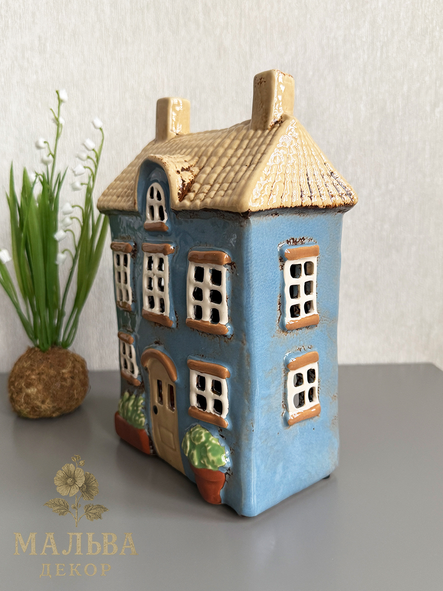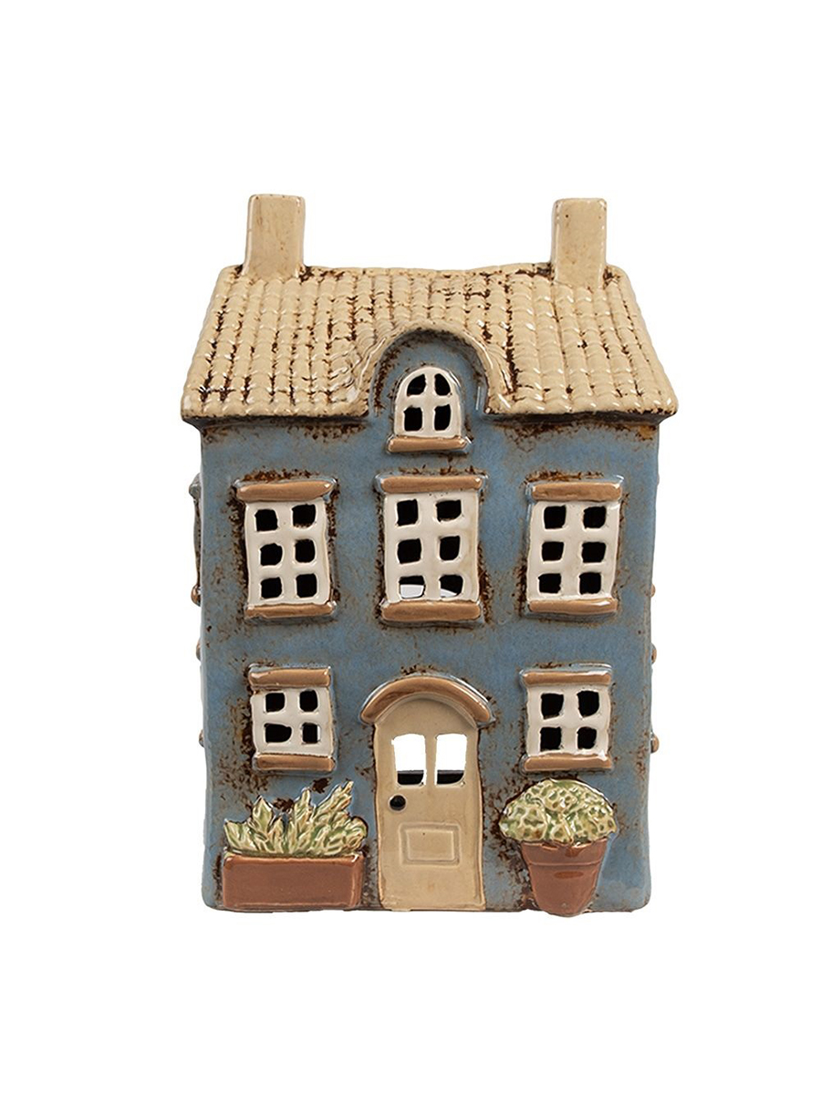 Керамический домик подсвечник от Clayre & Eef в нежно-голубом цвете для чайной свечи или светодиодной гирлянды.