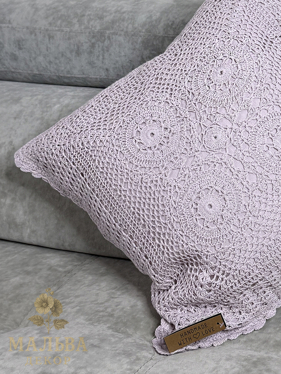 Романтичный стиль этой подушки, украшенной кружевным рисунком, привнесет уют в ваш интерьер. Подушку можно использовать не только как декоративный элемент, но и по назначению. Обратите внимание на уход за изделием, возможна только ручная стирка.