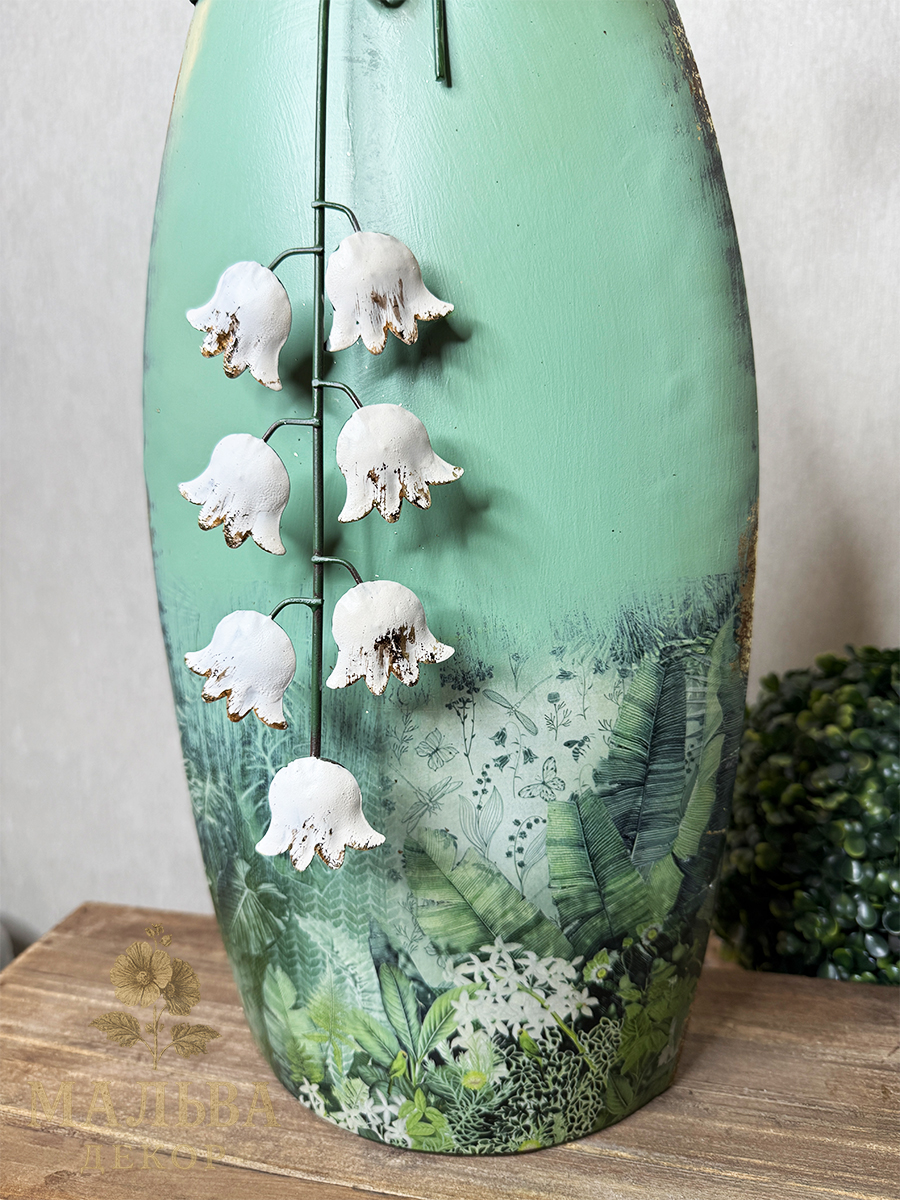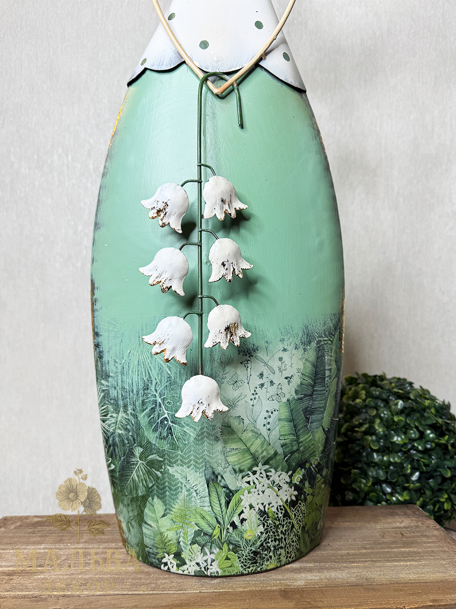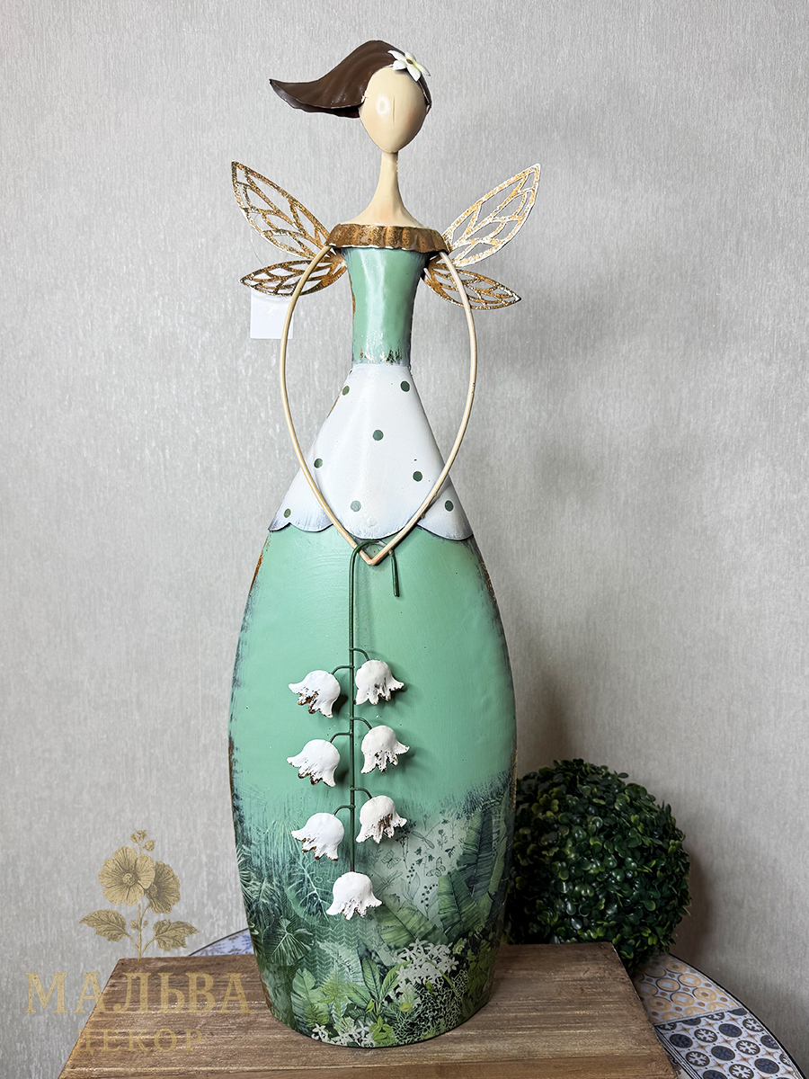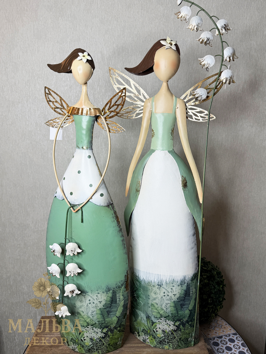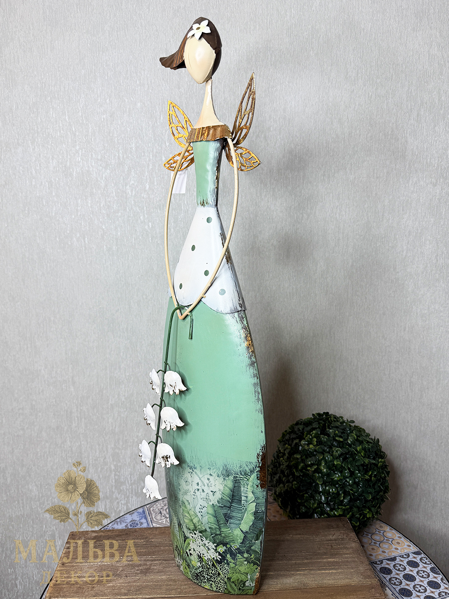 С приходом весны хочется украсить сад и вам поможет в этом весенняя фея с ландышем в руках. Металлическая декоративная фигура для сада двусторонняя.